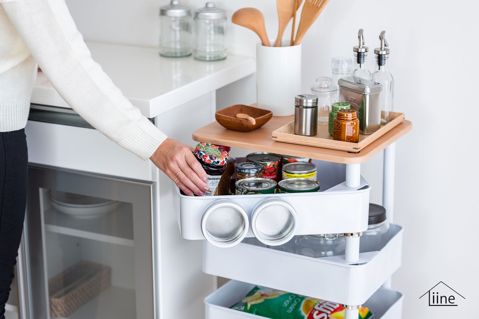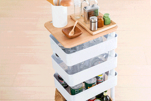 物の出し入れがしにくかったり、中身が見えにくいワゴンと比べて『回転トレイワゴン』は、収納トレイが回転するので中身が一目瞭然!コンパクトにまとめて、さっと取り出せます。上のトレイを避けたり、トレイ自体を引き出すのではなく、スムーズに "くるっと回転" するトレイは物の出し入れが簡単で収納しやすくとっても便利です。