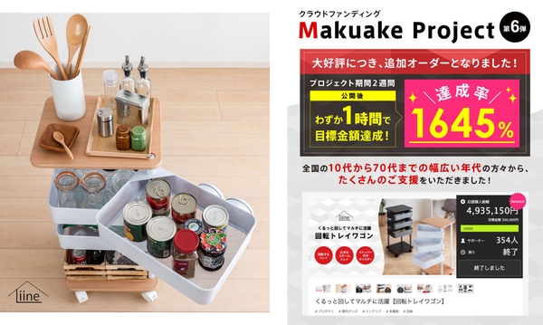 今年1月に応援購入サービス Makuakeより、インテリアブランド Liine(リーネ)の第6弾プロジェクトとなる『回転トレイワゴン』を掲載し、たくさんのご支援をいただき、プロジェクトは大成功をおさめました。
