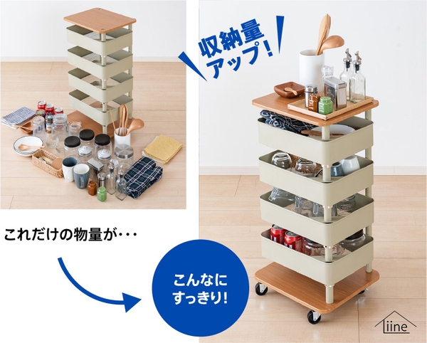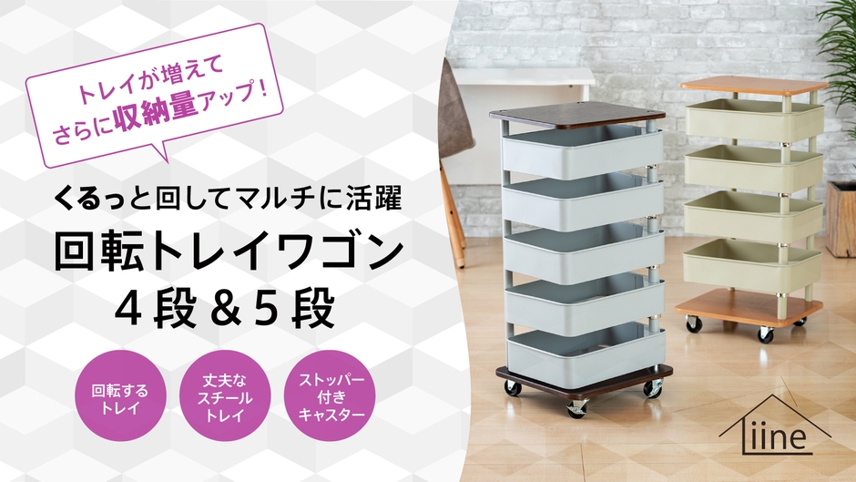 大好評の前回モデルから収納力UP!さらに進化した【回転トレイワゴン4段&5段】「Makuake」より先行予約販売中