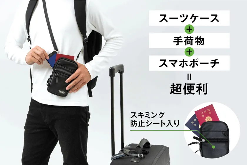 1,000名以上のお声を集め、「スマホ持ち運びの困ったあるある」を徹底的に解決したスマホポーチです。