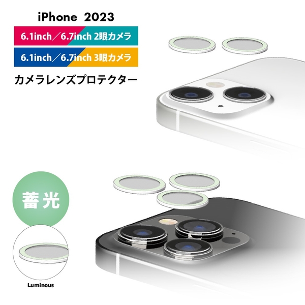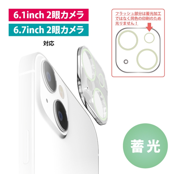 カメラレンズのフチが蓄光加工されている為、野外や鞄の中でもiPhone本体をすぐに見つける事が出来ます。表面硬度10Hの光沢ガラスと薄くて耐久性に優れたポリカーボネイトで一体成形されており、端末本体のカメラレンズ周りからLEDライト部までキズを付けず、美しくカメラレンズ守ります。貼り付け時に便利なクリーニングクロス・ほこり取りシール付き。