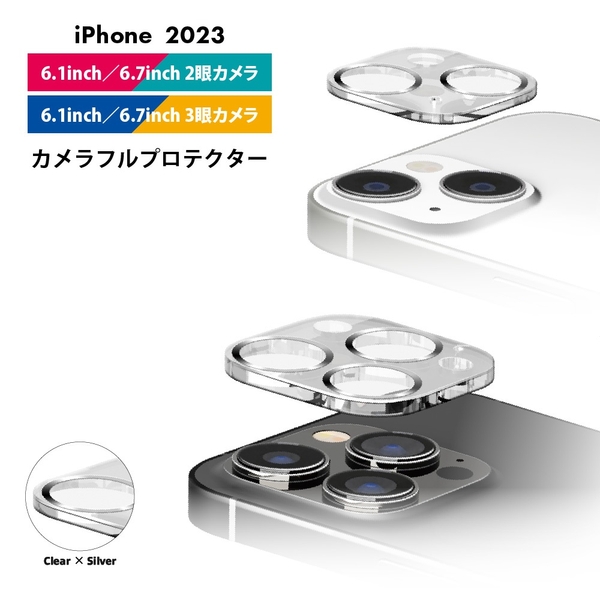 色鮮やかなカメラレンズのフチが特徴的なカメラフルプロテクター クリア/シルバーです。