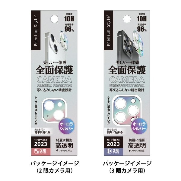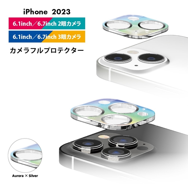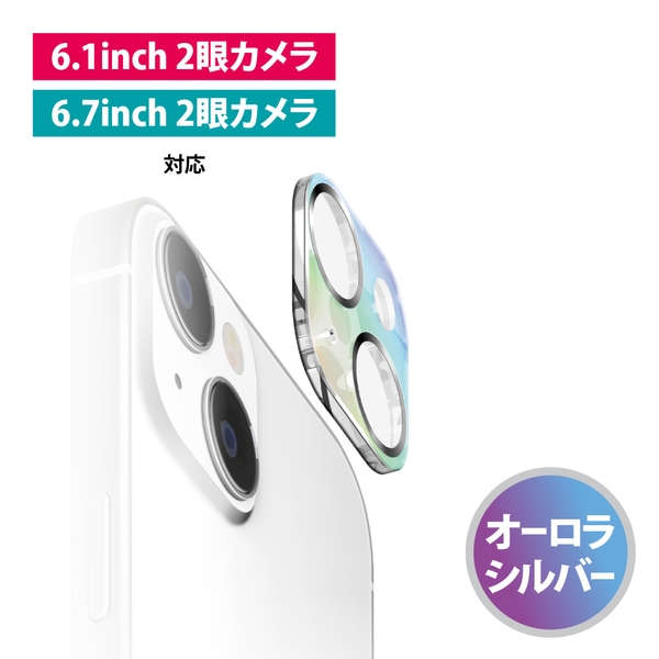 色鮮やかなカメラレンズのフチが特徴的なカメラフルプロテクター オーロラ/シルバーです。