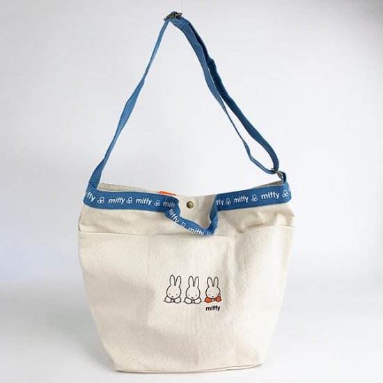 前面にはポケットもあり、右側にはいろいろなポーズのミッフィーが並んだデザインが入っています。