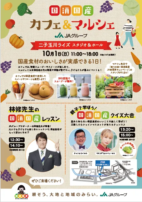 ~10月1日(日)11時から 「二子玉川ライズ スタジオ&ホール」にて~ 「国消(こくしょう)国産(こくさん)カフェ&マルシェ」を初開催!