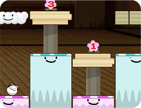 このゲームは、コロコロと転がり続ける猫のキャラクターを、ギミックを操作してゴールまで導くアクションパズルゲームです。指一本でプレイできる簡単な操作ですが、いつ、どのギミックを動かすかを考えるのは簡単ではありません。さまざまなバリエーションのステージが、脳を活性化させてくれます。