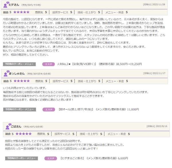 当サロンでは、この口コミを見ていただければ分かるように、価格はもちろんですが、金額以上に、結果にもこだわっています。