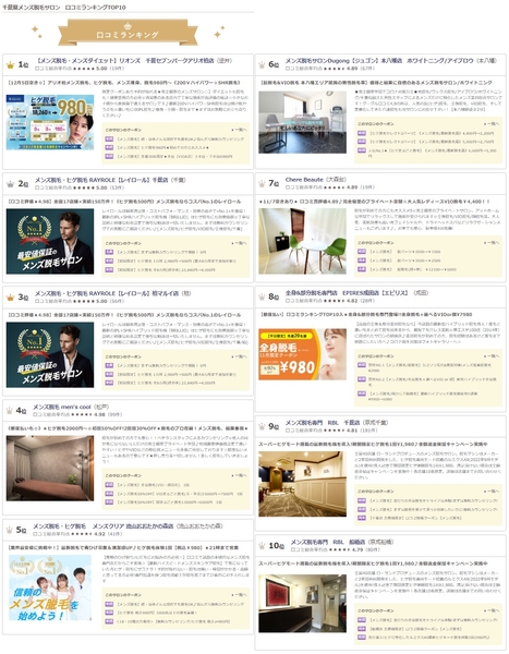 千葉県には174店舗の脱毛サロンが登録されている中、なんと『口コミランキング6位』にメンズ脱毛サロンジュゴンが堂々と入っています。