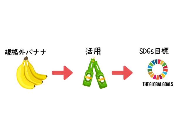 SDGsの中でもまず初めに目標として掲げられているのが「貧困をなくす」こと。フードロスの課題はこのSDGsの目標達成において取り組むべき重要課題の一つです。2022年開催された「SDGs探究AWARDS」の エントリーテーマが ”世界の国や地域におけるSDGs達成のために私たちができる、または実施しているアクションについて“ でした。私たちが提案したのは、規格外未利用のバナナを皮ごと使用したバナナビールの開発と販売、その売り上げの一部をバナナ農家に寄付するというものでした。このアイデアは「バナナの皮を捨てるのがもったいない」という日常生活での気づきから始まりました。