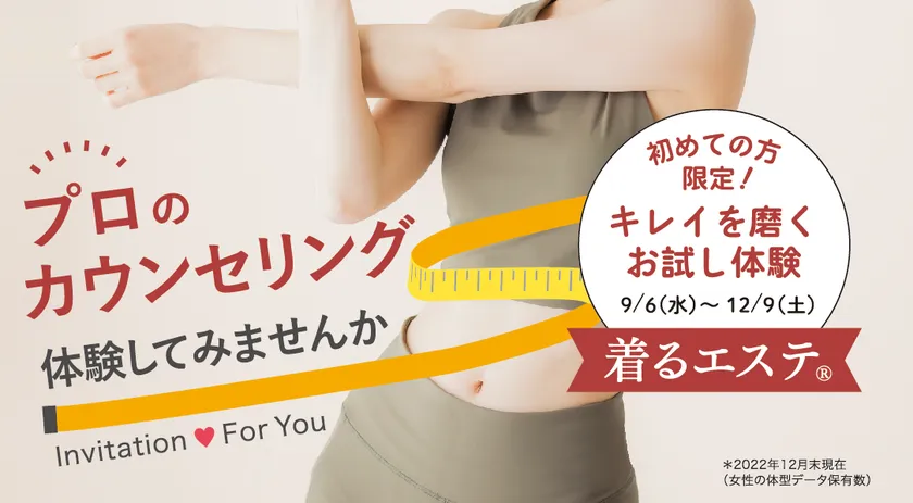 初めての方限定、キレイを磨くお試し体験「着るエステ(R)」を2023年9月6日(水)から12月9日(土)まで開催いたします。