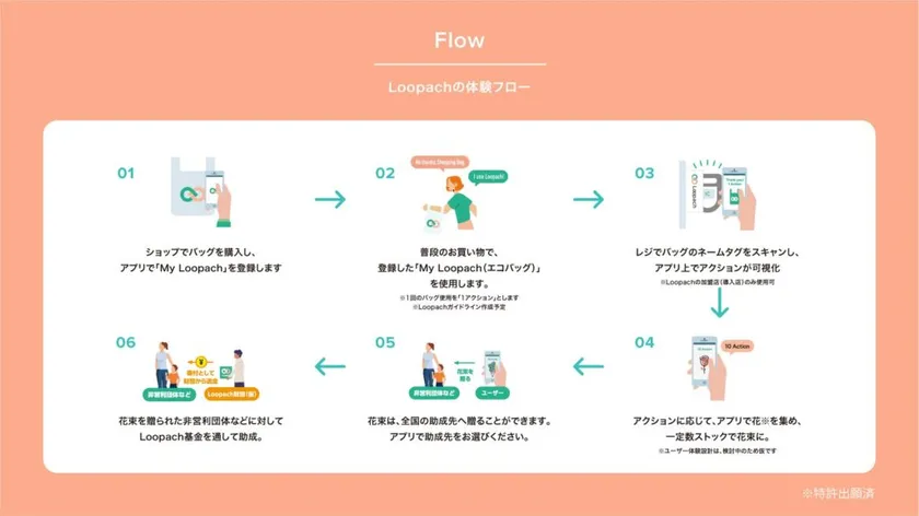 従来のLoopachを使用したお買い物時にバッグにインセンティブ・ポイントが貯まり、ユーザーが寄付先リストより選んだ団体にギフト(1pt=0.5円~)として送ることができる機能はそのままに、社会課題などと接点が少なかった方々にも、楽しみながら自然と考えるきっかけを持っていただける機能として期待しています。