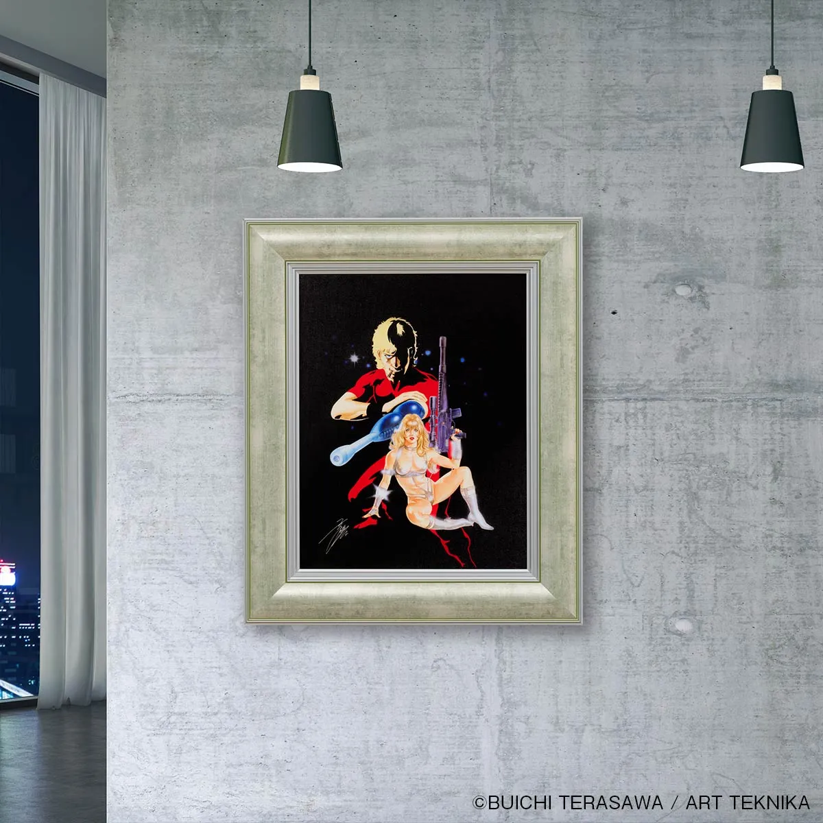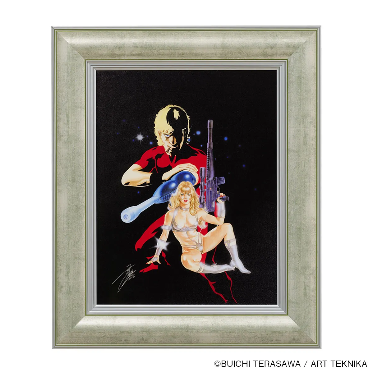 漆黒の宇宙を背にサイコガンを構えるコブラと艶めかしいジェーン・ロイヤルが描かれた原画の、タッチや色彩を高精細な複製技法「ピエゾグラフ」により忠実に再現。