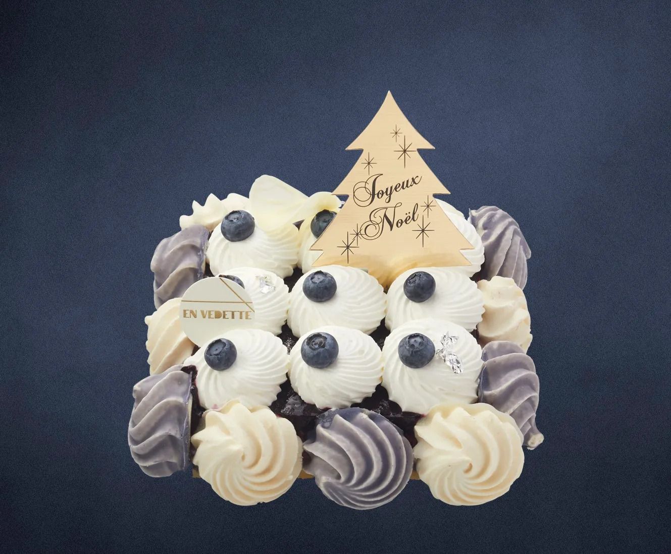 なめらかなレアチーズケーキに、ブルーベリージュレをあわせました。ホワイトとパープルの上品な色合いがおしゃれな聖夜を演出します。