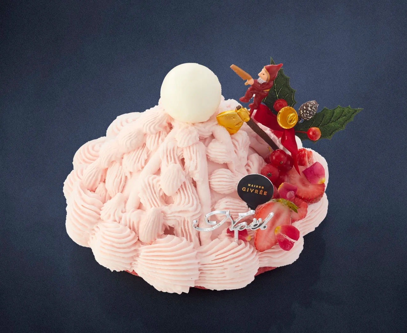 菅原智大シェフの代表作「アンティーク」のクリスマス限定バージョン。ホワイトチョコレートムースをフランボワーズのジュレで彩りました。
