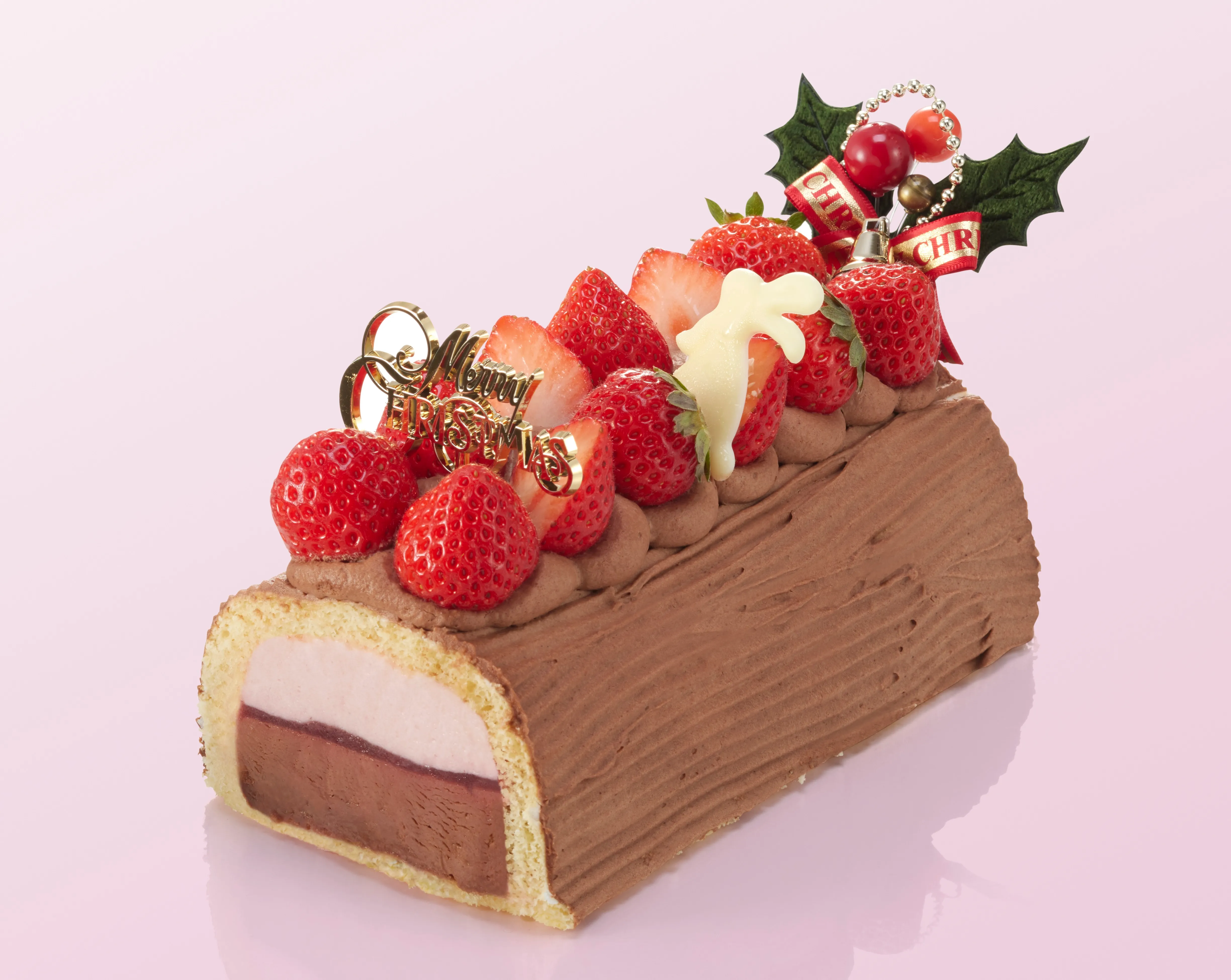 ミガキイチゴをふんだんに使用した、いちごとチョコレートのクリスマスケーキです。いちごムースと濃厚なチョコクリームの間に、甘酸っぱいイチゴジャムをサンドしました。