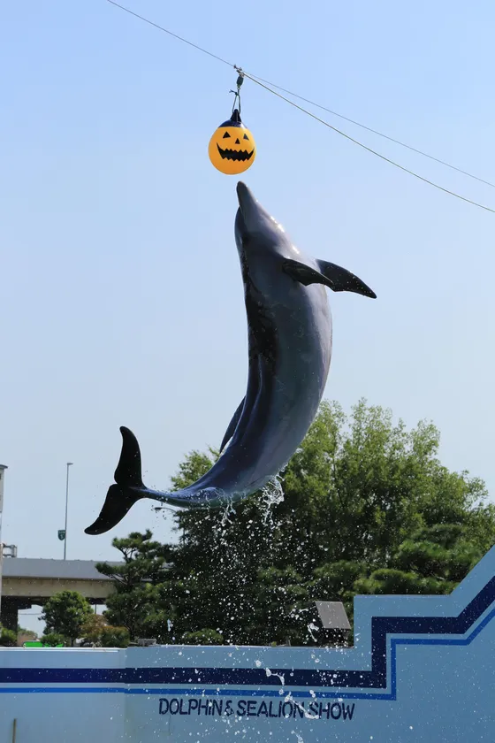 イルカの泳ぐ速度や高いジャンプを生み出す力などの身体能力や身体のつくりについて解説するほか、昨年好評だった「マッスルダンス」を今年も実施。お客様とイルカ、スタッフが一体となってショーを盛り上げます。