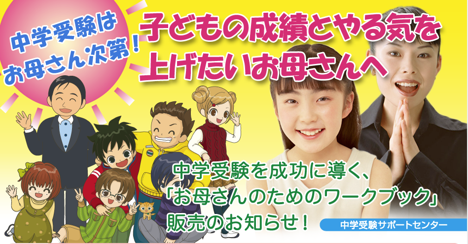 中学受験サポートセンター(所在地:東京都渋谷区)は、子どもの成績とやる気を上げたいお母さんへ向けて、中学受験を成功に導く「お母さんのためのワークブック」を7月9日(火)より発売いたします。