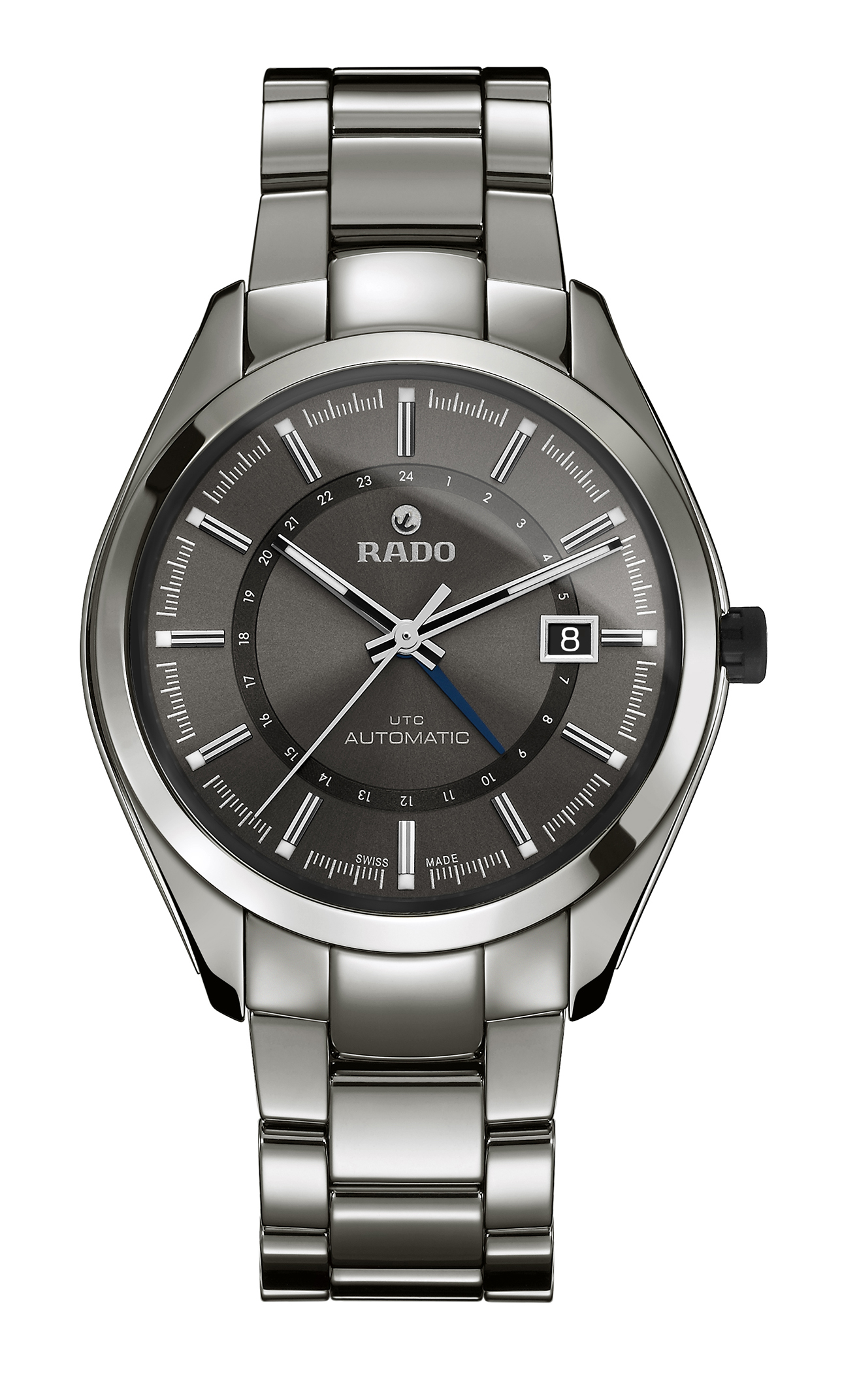 2013年7月8日 10:00常に革新性とハイテクノロジーを追求する、スイス時計業界のパイオニアであるラドー(スウォッチ グループ ジャパン株式会社、本社:中央区銀座)は、初のUTCモデル「ラドー ハイパークロームUTC」を発売いたします。UTCとは、Coordinated Universal Timeの略で、協定世界時を意味します。24時間針でセカンドタイムゾーンが表示できる機能付きのこのモデルは、プライベートでの旅行、ビジネスでの海外出張などで活躍できる1品です。「ラドー ハイパークローム」の特徴であるハイテクセラミックスによるモノブロックケースもそのままにシックでモダンなデザインに仕上がっています。