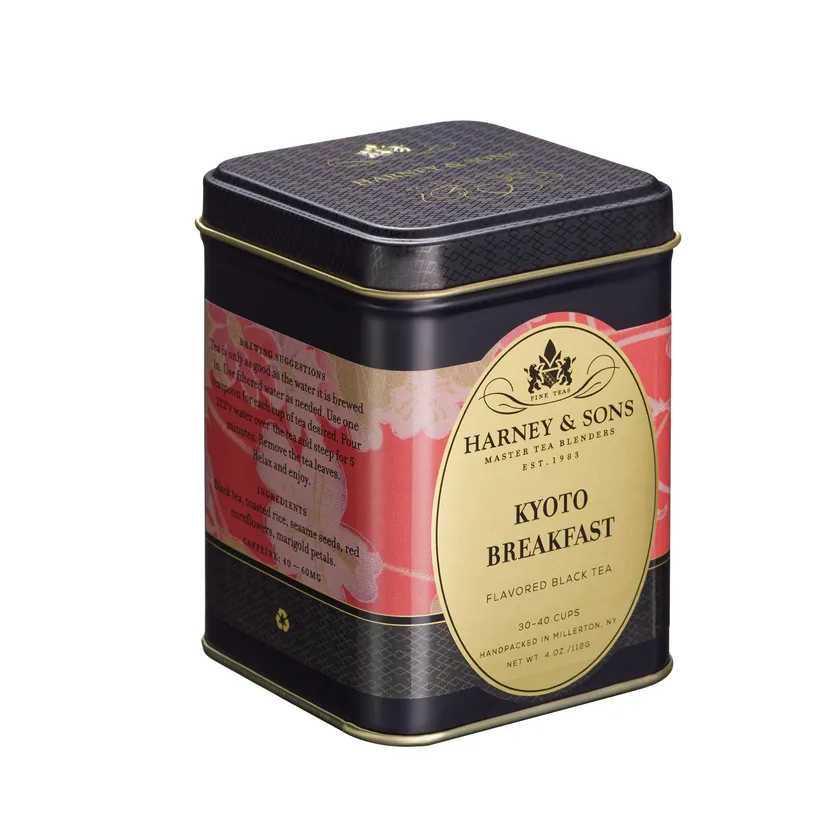 We wanted to create a pleasant black tea, to make a nice cup for breakfast. We've added sesame seeds and rice to evoke toasty notes like the many bakeries in Kyoto, as well as pay homage to the use of rice & sesame in Japanese culture. Lastly, the marigold petals and red cornflowers evoke the rising sun.