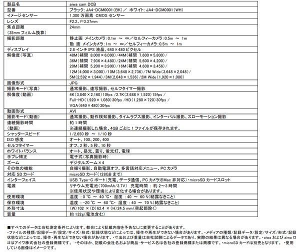 テクミラホールディングスの子会社であるアイワマーケティングジャパン株式会社(本社:東京都千代田区、代表取締役社長:藤岡 淳一、以下 アイワマーケティングジャパン)は、aiwaの新製品として、セルフィーカメラ搭載で気軽に日常撮影ができる軽量約132gのコンパクトデジタルカメラ【aiwa cam DCB】(以下 本製品)を、aiwaダイレクトサイトおよび各家電量販店、ネットショッピングサイトにて順次販売開始いたします。