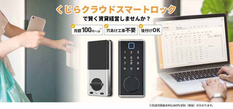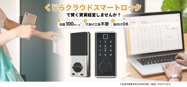 株式会社くじらリアルエステートテック(所在地:⼤阪市⻄区)は1部屋追加あたり月額100円から利用可能、穴あけ工事不要、既築物件への後付けも可能な「くじらクラウドスマートロック」の販売を10月から開始しました。