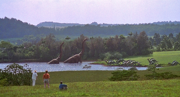 はるか昔に絶滅した恐竜たちが現代によみがえったらどうなるだろうか? 破天荒なアイデアを遺伝子工学に基づいて描き、ベストセラーとなったM・クライトンの原作を、S・スピルバーグが特殊技術の 粋を尽くして映像化した驚嘆の恐竜ワールド。古代の琥珀の中の蚊から恐竜のDNAを抽出し、バイオテクノロジーによる恐竜の再生が成功した。コスタリカ近くの小島に建設中の“ジュラシック・パーク”は、よみがえった恐竜が歩き回る史上最大のテーマパークになるはずだった。モニターとして3人の学者と二人の子供が園内をめぐるが、コンピュータのトラブルから制御されていたはずの恐竜たちが暴れ出し、肉食恐竜は人間に襲いかかった……。画面の中を縦横に駆けめぐる恐竜の躍動感、現実感には映画が ここまでできるのかという感動を与える。(ぴあ映画生活より)