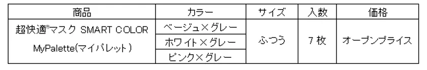 そこでこのたび、快適なつけ心地と高いデザイン性から好評の『超快適(R)マスク SMART COLOR』から、自然な色合いで気軽に使いやすいバイカラータイプのMyPalette(マイパレット)を期間限定品として発売します。