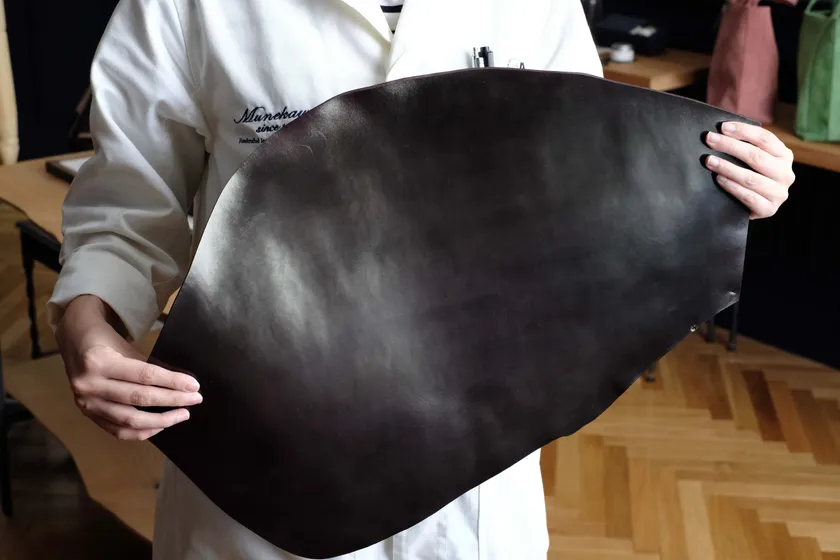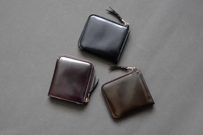厚みは約1mm程ですが、奥行きを感じる透明感がありコードバンの最高峰です。この素材は、他には代わりのできない特別な質感と表情を持っています。