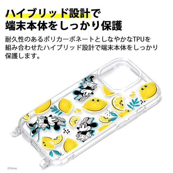 2023年9月13日にアップル社から発表された6.7インチデュアルカメラモデルに対応する、キャラクターデザインの持ち運びに便利なショルダーストラップやハンドストラップを取り付けられるショルダーストラップホール付クリアハイブリッドケースです。クリアデザインでiPhone本体の美しさを最大限に活かします。耐久性のあるポリカーボネイトとしなやかなTPUを組み合わせたハイブリッド設計で端末本体をしっかり保護します。ケース底面部には、お手持ちのショルダーストラップやハンドストラップを取り付けられるストラップホール付き。