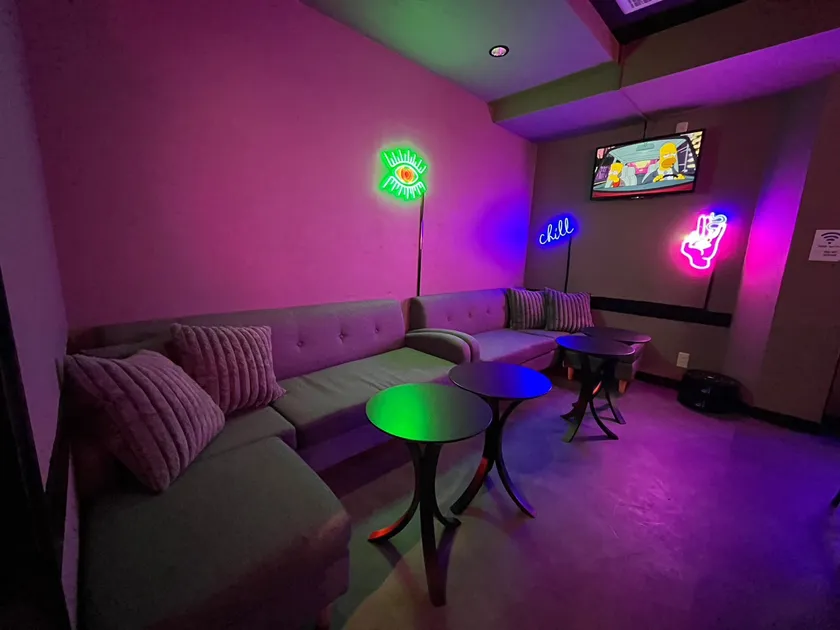 店内では、レーザーやネオンによる幻想的な煙の演出をお楽しみください。
