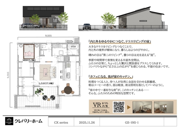 全国で注文住宅ブランドのFC展開を行う株式会社クレバリーホーム(本社:千葉県君津市、代表取締役:松田芳輝)は、人気平屋商品 「Granshare(グランシェア)」 に、現代の生活価値観に合わせた 新しい“コンパクト平屋プラン” を追加し、2025年12月1日(月)より全国で販売を開始いたします。