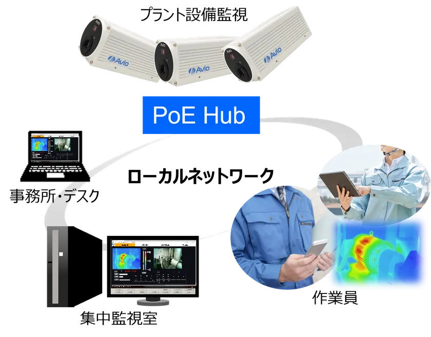 また、本製品を低価格(当社従来製品比)に抑え、更にPoE給電の採用、保護ハウジングなしでも様々な環境下に設置できる高い耐環境性を持たせることにより、システムとしてコストダウンが見込まれ、設備内のより多くの監視ポイントでの本製品設置が可能となり、点検の効率化や省人化を促進し、安全な設備操業に貢献いたします。