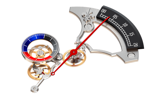 1秒1秒の経過をより際立たせ、「時間」の新しい価値を感じてもらうために、レトログラード機構を搭載しています。中央に配置しているレッドのレトログラード秒針は、20秒ごとに元の位置に瞬時にフライバックする仕様です。9時位置のスモールセコンドは、レトログラードの周期に対応して20秒ごとにブルー・ブラック・レッドに色分けされており、本来の秒針同様に60秒で1回転します。