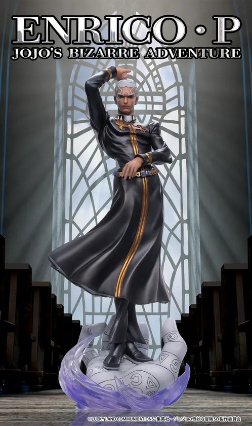 波打つ漆黒の衣装を身に纏い、こちらを見据えるエンリコ・P!スタンド「Ws」の魔の手をイメージした台座は、エフェクトパーツにより一層怪しさを醸し出す!