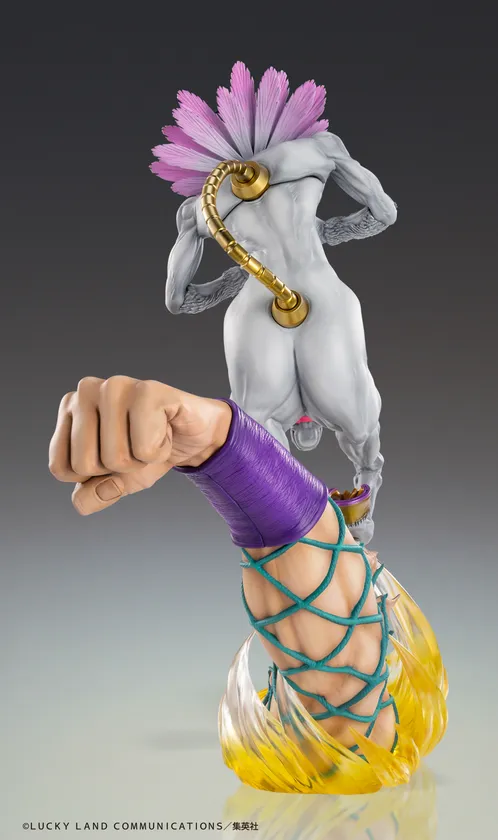 徐倫のスタンド「S・F」の拳と繰り出される繊細な糸をイメージした台座に佇み、力強い眼差しを向ける徐倫!