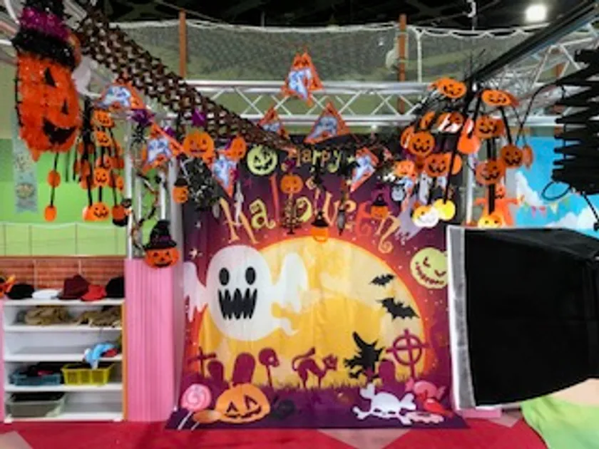ハロウィンの衣装やアイテム、背景で撮影ができます。