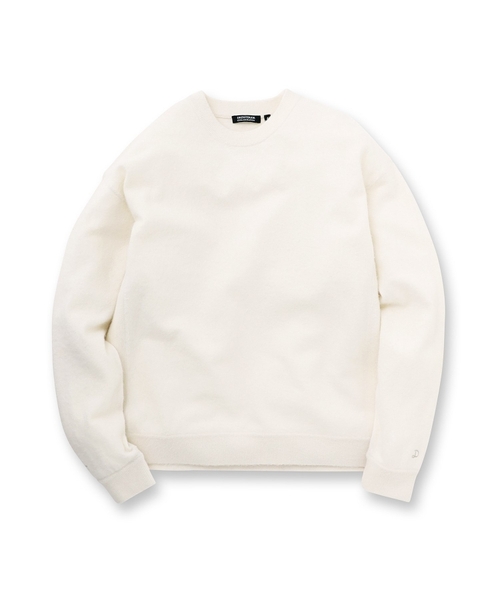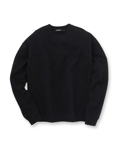 首元のVガゼットなど、ヴィンテージスウェットを思わせるステッチワークを反映させた上品なニット。