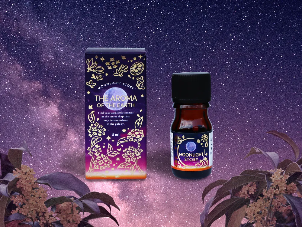 月明かりのきらめきの香り。贅沢な金木犀の香りをベースに、イランイラン、オレンジなどをブレンドした、うっとりと心ときめくアロマ。