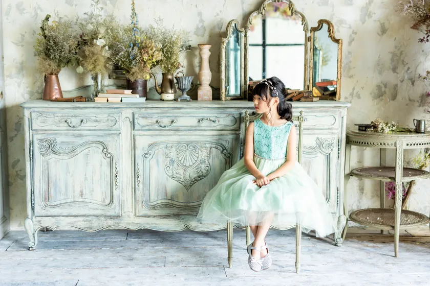 1800年代のアンティーク家具をはじめ空間がより映える家具・小物ものを多数追加。また、家具やお花の配置を変えることで、より統一感があり今までと違った世界観で360°どこを撮影しても絵になる空間へと変わりました。子供が自然と触りたくなる小物や座りたくなる場所などをつくり、自然と撮影場所へも誘導できるようになっています。リニューアルにより撮影できるイメージは10シーン以上となり、お客様のご希望にあわせた撮影がより可能になりました。