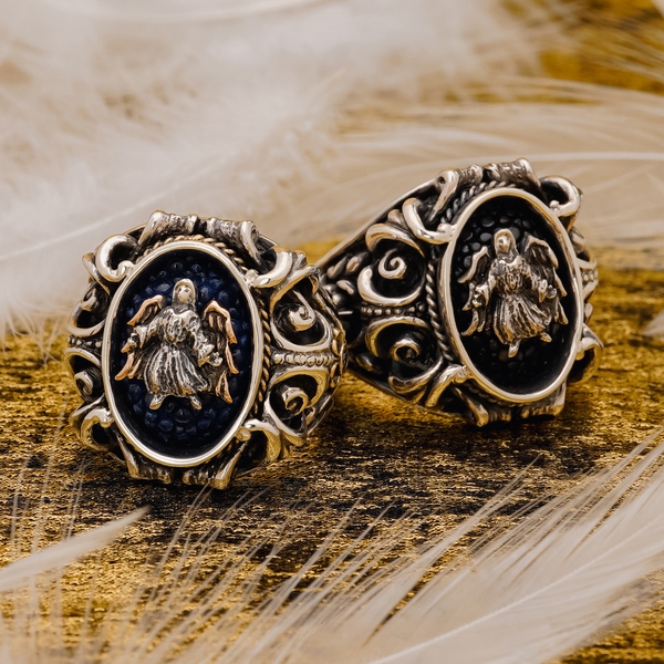 本年の新作では、ブランドを象徴する名作“Pope’s Inlay Ring”(ポープス インレイリング)をより洗練されたスモールサイズとして再構築しました。コンパクトなフォルムへと生まれ変わったことで、Dennis氏が重んじた「細部への美学」がより鮮明に立ち上がり、装飾の繊細さや技術の緻密さが一層際立つ作品に仕上がりました。さらに、今回の発表に合わせて新たに制作された“Angel Inlay Parts”(エンジェルインレイパーツ)が登場します。