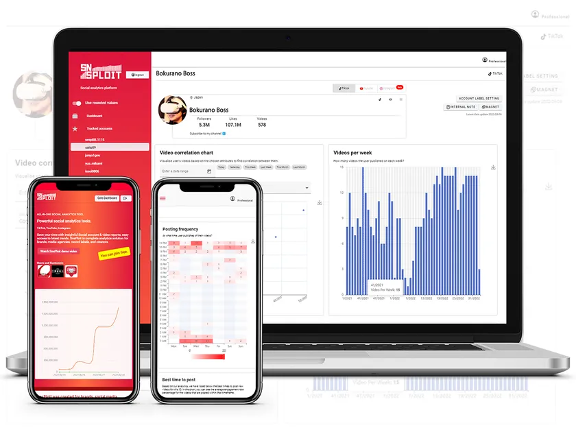 2:ソーシャルアカウントの分析および動画のエンゲージメント率を評価し、アカウント同士を比較・分析できる「SNSPLOIT」