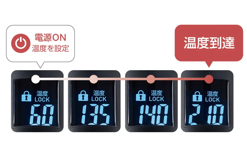 ●設定温度までの目安がわかる温度推移表示