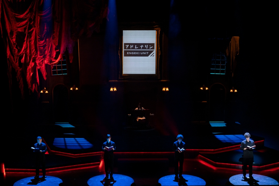 一人ひとりのリーディングに集中できる短編が披露された後は、キャスト全員が集結して1つの話を演じる。本番までに台本を完成させられなかった売れない演劇ユニットが劇場に伝わるいわくつきの台本を探しだし……という内容で、リアルとフィクションが溶け合っていくような感覚にゾクッとする。4人のキャストによるイキイキとした掛け合いが魅力的だ。また、ソロのリーディングでは動きが少なかったぶん 4人がステージ上で右往左往する様子に緊張感が高まり、さらに引き込まれた。 演じるキャストによってキャラクターの印象や関係性も少しずつ変わると予想されるため、他の回も見てみたいと思わされた。