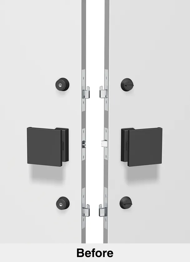 従来製品では、防犯性の高い官民適合(CP)仕様の手動錠をCP仕様の電気錠に変更するには、配線工事を伴うドア交換が必要でしたが、この度、電池式にすることでドア交換・配線工事等が不要でありながら、防犯性能も保てるハンズフリー認証スマートロックを開発しました。