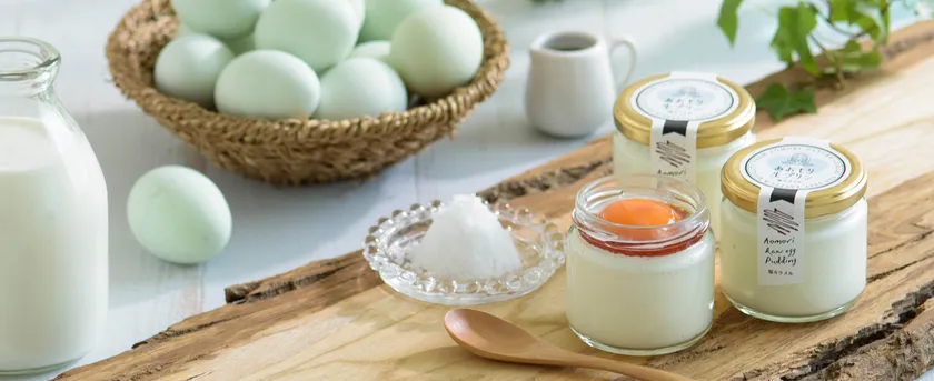青森のプリン専門店として2012年より活動し、現在は「あおもり生プリン」・「あおもりプリン」の2ブランドを展開。「あおもり生プリン」は、生卵の黄身をあとのせして混ぜて完成するという画期的なプリンを開発し、色々なマスメディアに取上げられ、農林水産大臣賞やにっぽんの宝物でグランプリを受賞するなど受賞歴も多数。今、注目の新プリンスイーツです。