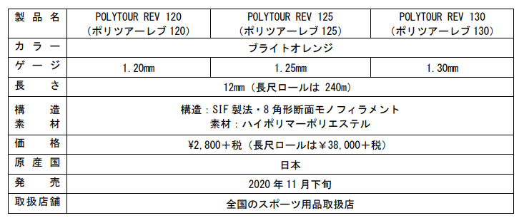 ヨネックス株式会社(代表取締役社長:林田草樹)は、8角形断面構造による喰いつきでスピンが掛かり、独自製法で性能が持続するテニスストリング「ポリツアーレブ」を2020年11月下旬より発売いたします。