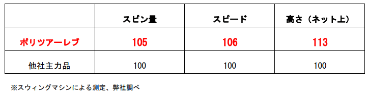 8角形断面構造による喰いつきに加え、潤滑性の高いシリコーンオイルをストリング内部まで浸透させる弊社独自の技術「SIF製法」により、打球時にストリングが大きく動いて素早く復元する性能を維持。他社主力品との比較では、スピン量+5%※、スピード+6%※と、威力のあるスピンボールを繰り出します。