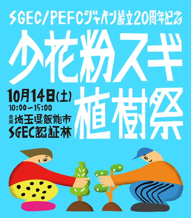 一般社団法人緑の循環認証会議(SGEC/PEFCジャパン)(東京都千代田区、会長:前田直登、以下 SGEC/PEFCジャパン)は、2023年10月14日(土)、埼玉県飯能市のSGEC認証林で「第5回少花粉スギ植樹祭」を開催します。