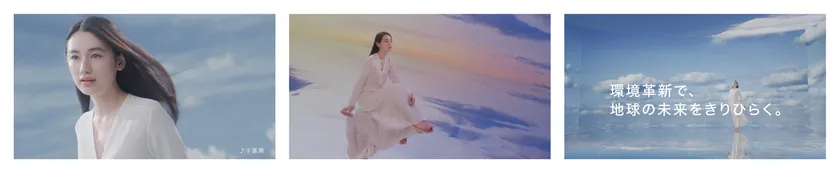 今回のCMでは、そのパーパスの実現に向けてさまざまな社会課題の解決に挑戦する社員=環境クリエイターの姿やその想いを、八木莉可子さんが透き通った清らかな空気のような存在として表現しています。