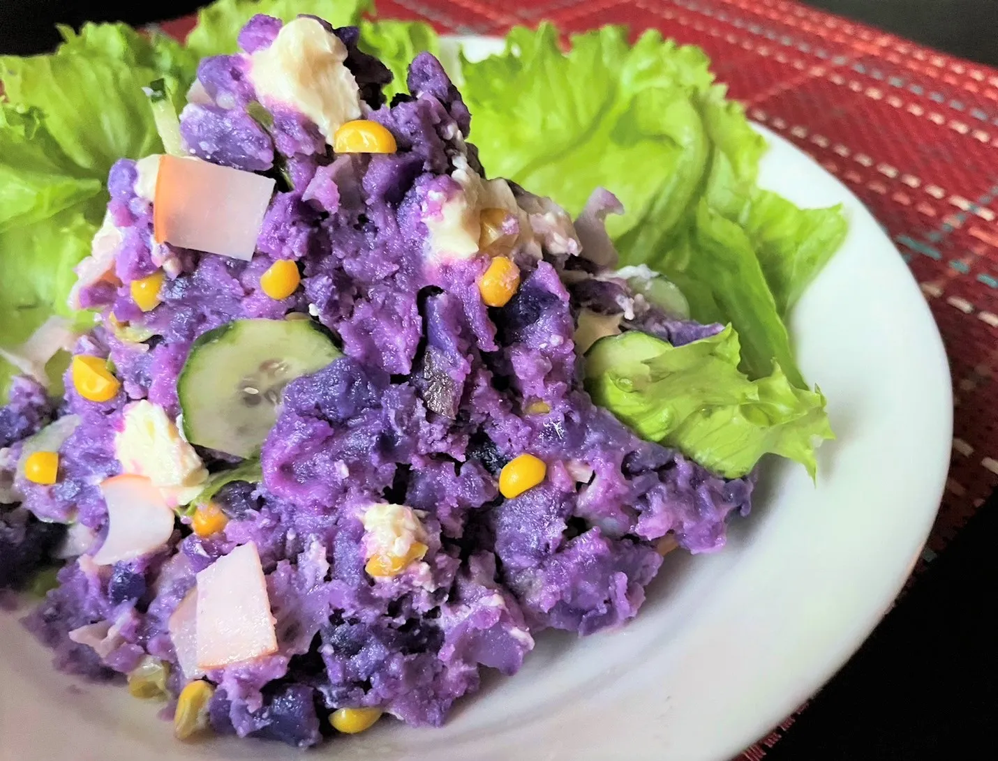 ハロウィーン気分を盛り上げる鮮やかな色のポテトサラダ。紫色のじゃがいも「シャドークイーン」を使用。クリームチーズとの相性も抜群です。